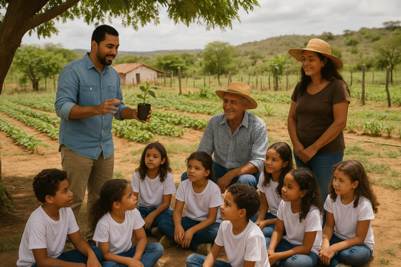 Associações comunitárias, empresas com compromissos ESG (ambiental, social e de governança), cooperativas agrícolas e ONGs ambientais também podem oferecer oficinas, mutirões, projetos de hortas escolares, visitas técnicas e cursos de capacitação para professores e alunos. A zona rural do entorno de Campina Grande abriga uma enorme riqueza de experiências agroecológicas, saberes populares e práticas sustentáveis que precisam ser integradas ao processo educativo.