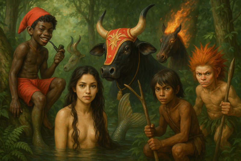 Mas nossa riqueza não para no universo luso-indígena. Ela se aprofunda nas raízes mais ancestrais desta terra. As lendas indígenas, como a da Iara, a mãe-d’água cujo canto é um chamado irresistível e fatal, falam de um respeito profundo pelas forças da natureza. Já as narrativas quilombolas, forjadas na resistência e na dor, mas também na esperança, trazem entidades poderosas como a Caipora, muitas vezes retratada como uma figura protetora dos animais, que pode ser amiga ou inimiga do homem, dependendo de sua intenção.